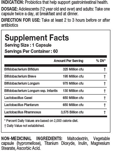 Tested Probiotic on tehokas probioottinen lisäravinne , joka sisältää 6,5 miljardia elävää bakteeriviljelmää annosta kohden . Nämä hyödylliset mikro-organismit auttavat tukemaan luonnollista ja tasapainoista suolistobakteerikantaa , mikä puolestaan edistää ruoansulatusta ja yleistä terveyttä.
